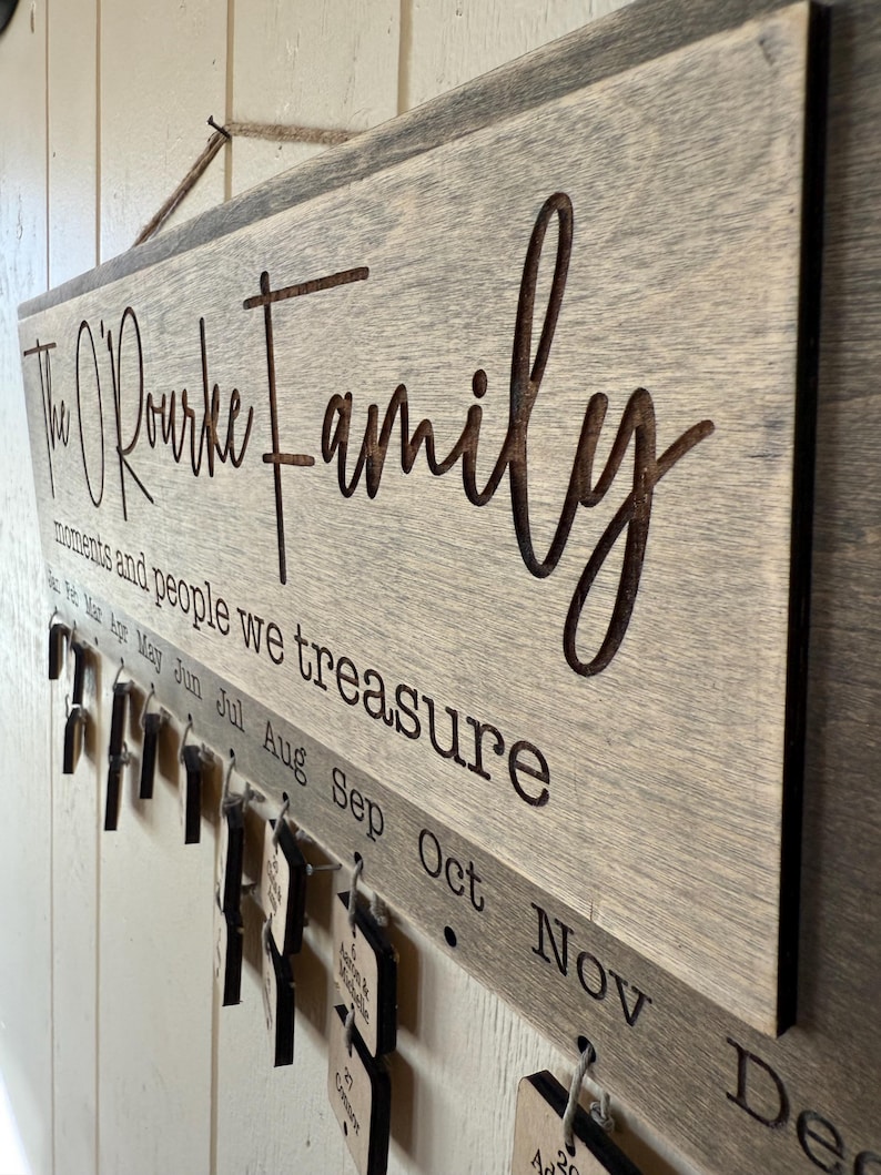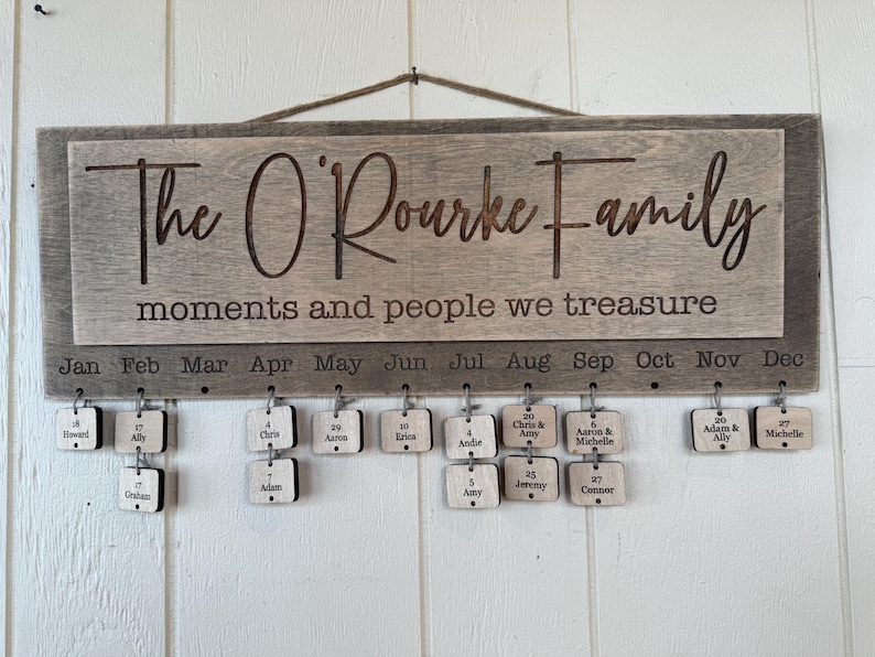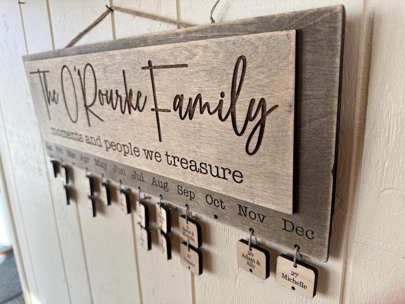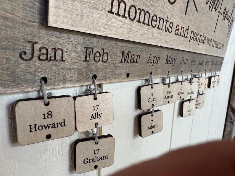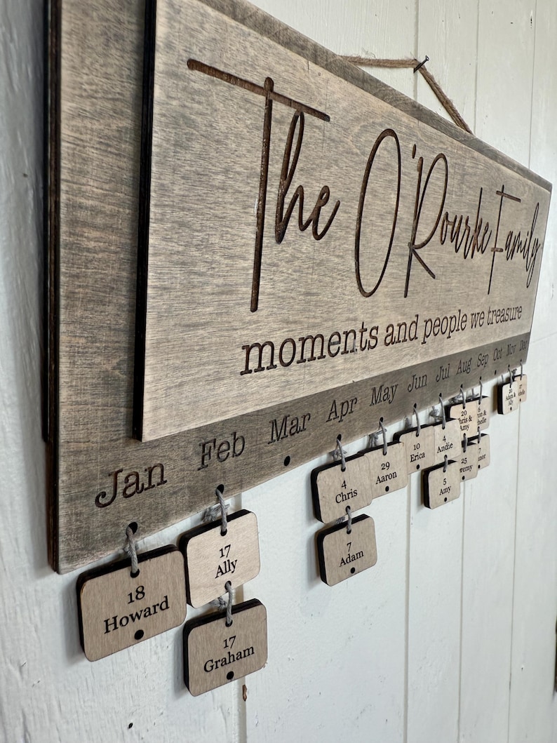 Handmade Wooden Family Birthday Calendar: Engraved Perpetual Wall Hanging